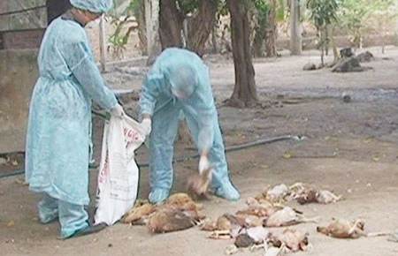 Cán bộ thú y ở tỉnh Tây Ninh thu gom gia cầm chết. Ảnh: H.MINH