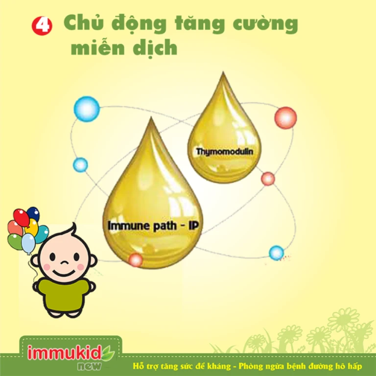 - Dung dịch uống Immukid - new với công thức độc đáo chứa Thymomodulin kết hợp immunepath IP, được bào chế bằng công nghệ hiện đại nhất đem đến một sản phẩm hoàn hảo, có tác dụng kích thích hệ miễn dịch sản sinh các kháng thể miễn dịch một cách tự nhiên; giúp cơ thể nâng cao sức đề kháng, nâng cao khả năng phòng bệnh.