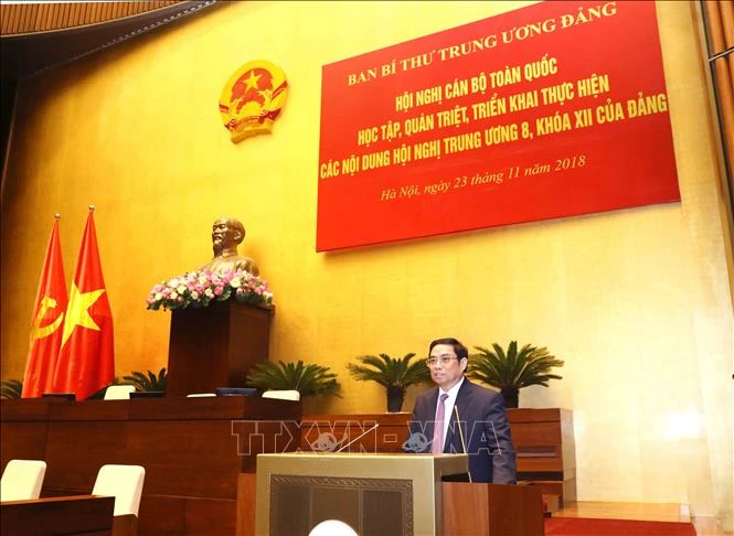 Phát biểu tại hội nghị, Thường trực Ban Bí thư Trần Quốc Vượng nhấn mạnh Hội nghị Trung ương 8 diễn ra vào thời điểm giữa nhiệm kỳ khóa XII, là năm bản lề có ý nghĩa quan trọng đối với việc thực hiện thắng lợi Nghị quyết Đại hội XII của Đảng.