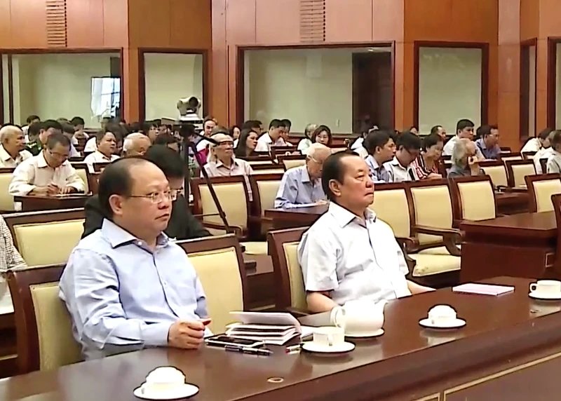 Tại điểm cầu TP.HCM, tham dự có nguyên Bí thư Thành ủy TP.HCM Lê Thanh Hải, Phó Bí thư Thường trực Thành ủy TP.HCM Tất Thành Cang, Chủ tịch HĐND TP.HCM Nguyễn Thị Quyết Tâm...