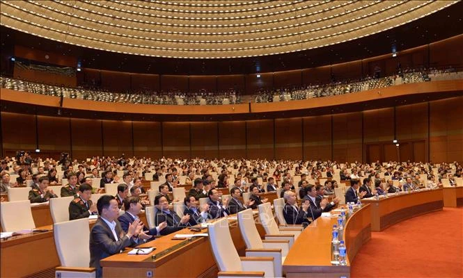 Các lãnh đạo, nguyên lãnh đạo Đảng, Nhà nước và các đại biểu dự hội nghị. Ảnh: PHƯƠNG HOA/TTXVN
