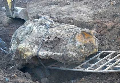 Ngày 10-2, người dân phát hiện tảng đá bán quý canxedon này trong rẫy cà phê và đang bị công an tạm giữ. Ảnh: MT