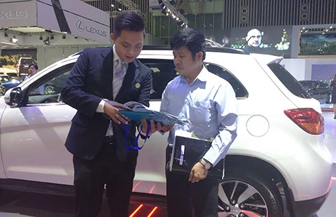 Nếu thuế tiêu thụ đặc biệt tăng cao thì các hãng xe phải cải tiến động cơ theo hướng dung tích nhỏ nhưng công suất mạnh mới có thể cạnh tranh. Trong ảnh: Khách hàng tìm mua xe tại Triển lãm Motor show Viet Nam 2014 tổ chức tại Tp.HCM. Ảnh: Q.HUY