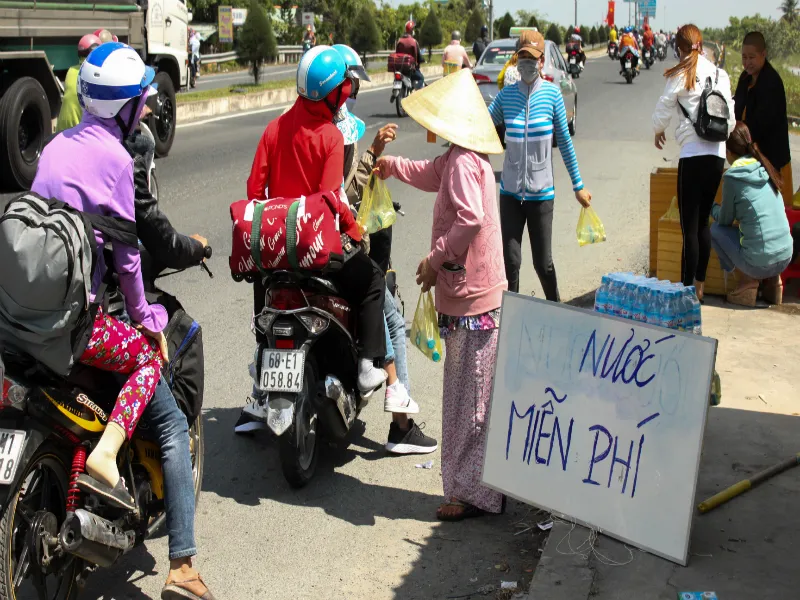 Hàng ngàn người dân cùng phương tiện đang vật vờ dưới cái nắng gay gắt đoạn kẹt khu vực cầu Mỹ Thuận thì bất ngờ nhận được chai nước suối miễn phí từ lực lượng Cảnh sát giao thông tỉnh Vĩnh Long và các nhân viên của Công ty Honda Tân Thành. Trong buổi chiều có hơn 6.000 chai nước suối đã được trao tận tay người đi đường, phần nào xóa tay cái cảm giác oi bức.