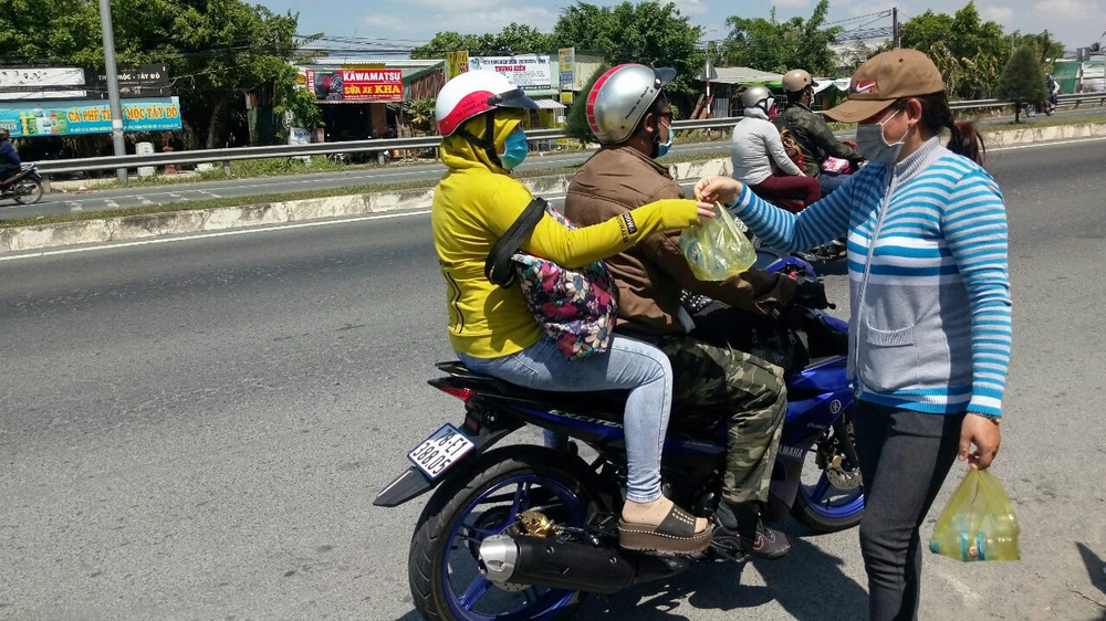 “Những ngày này, người dân bắt đầu đi trở lại thành phố làm việc, đường xa vất vả lại thêm kẹt xe. Chúng tôi chỉ muốn góp phần nhỏ cho bà con đỡ nhọc nhằn thôi. Phát hết chỗ này, chúng tôi tiếp tục mua thêm và sẽ phát cho tới khi nào người đi đường vắng lại”, sư cô chia sẻ.