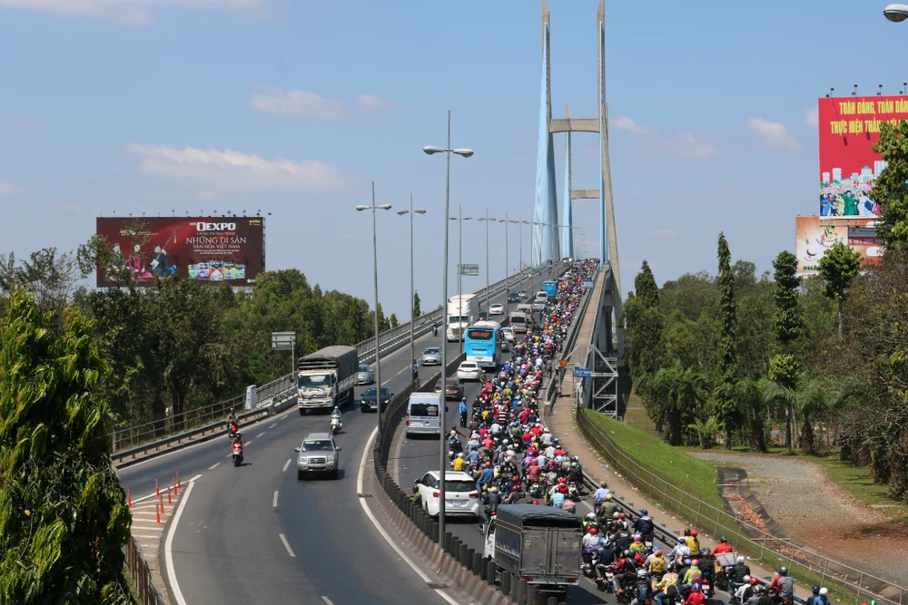 Đặc biệt là đoạn từ Vĩnh Long đến Tiền Giang (khu vực Cầu Mỹ Thuận), Long An. Hướng lưu thông từ Miền Tây đi TP.HCM từng đoàn xe chen chúc, nối đuôi nhau dày đặc, phương tiện chỉ nhích từng chút một, có lúc cao điểm kẹt cứng, đối lập hướng lưu thông ngược lại thì giao thông thông thoáng.