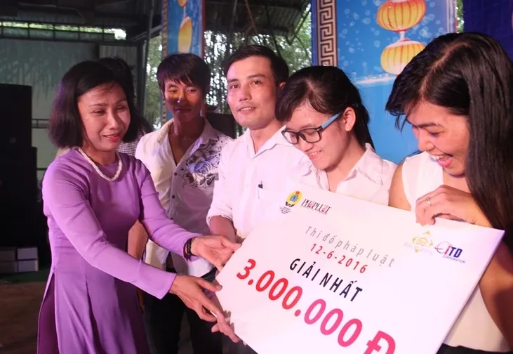 Phần thi "Tìm hiểu pháp luật" kết thúc với nhiều kiến thức bổ ích cho công nhân. Ảnh: HOÀNG GIANG