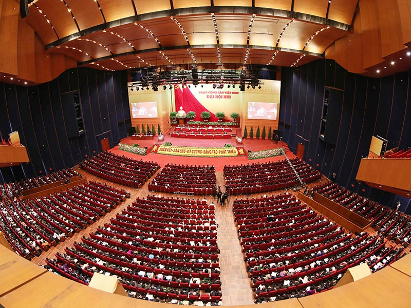Toàn cảnh phiên thảo luận các văn kiện Đại hội XIII của Đảng tại hội trường Trung tâm Hội nghị Quốc gia sáng 28-1. Ảnh: TTXVN