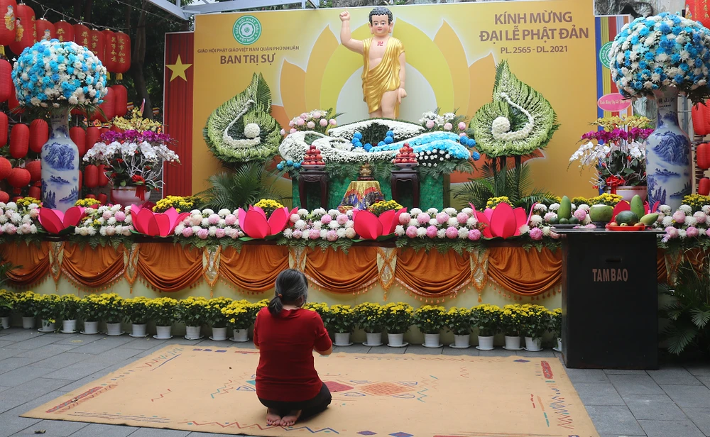 Người dân đến chùa trước ngày lễ Phật đản. Ảnh: KHÁNH CHI