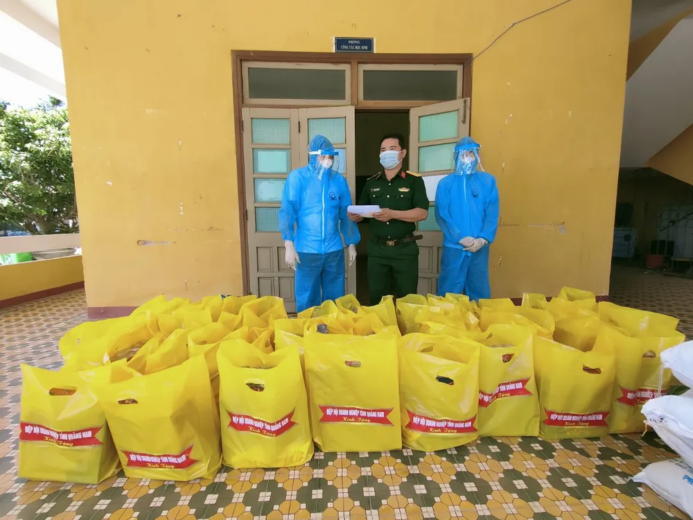 Tại Khu cách ly tập trung huyện Phú Ninh, ông Đinh Minh Trí, Uỷ viên Ban chấp hành HHDN tỉnh Quảng Nam đại diện HHDN tặng 42 suất quà cho bà con đang thực hiện cách ly sau khi được đón về từ TP.HCM.