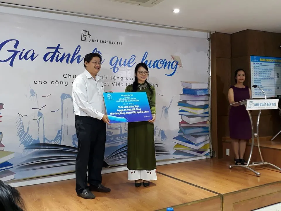 Số sách này được trao cho hai tổng thư viện của Đài Bắc và Tân Bắc, Đài Loan, hai khoa Đông Nam Á học của hai ĐH Ký Nam và Văn Tảo, 12 trung tâm học tập dành cho cư dân mới - nơi dạy văn hóa, tiếng Đài cho cô dâu Việt và dạy tiếng Việt cho con họ.