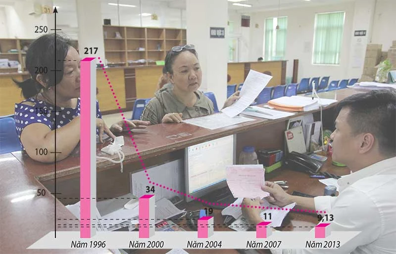 Số người đóng BHXH cho một người hưởng giảm dần theo các năm. (nguồn: Vụ BHXH, Bộ LĐ-TB&XH)