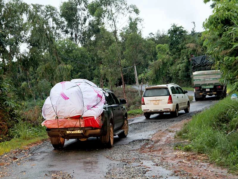 Đoàn xe từ thiện vượt đoạn đường hơn 300 km đến địa điểm trao quà. Ảnh: HOÀNG GIANG