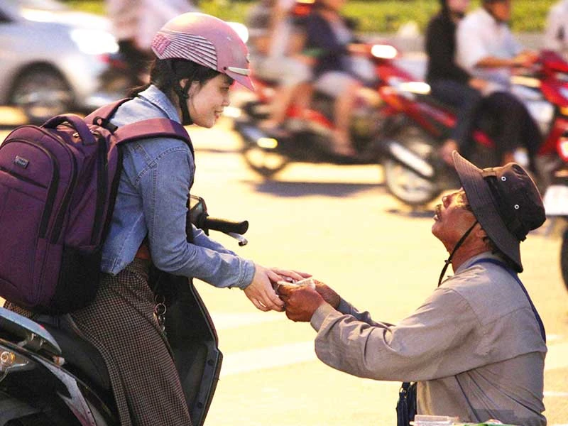 Còn hôm bữa tui đọc đâu câu chuyện có anh kia ghé đường Nguyễn Văn Đậu, Bình Thạnh mua xôi, có thằng nhóc ghé bán vé số, ảnh mua cho nó hai tờ. Thấy nó đói rách, ảnh kêu chị bán xôi bán thêm một hộp cho thằng nhỏ. Thằng nhỏ biết mua cho nó nên nói chị bán xôi chia thành hai bịch để nó cho nhỏ bạn cùng bán vé số cũng đang đói. Anh mua xôi thấy thế liền kêu chị bán xôi bán luôn cho hai hộp. Thằng nhỏ cảm ơn rối rít rồi cầm hai hộp xôi đi.