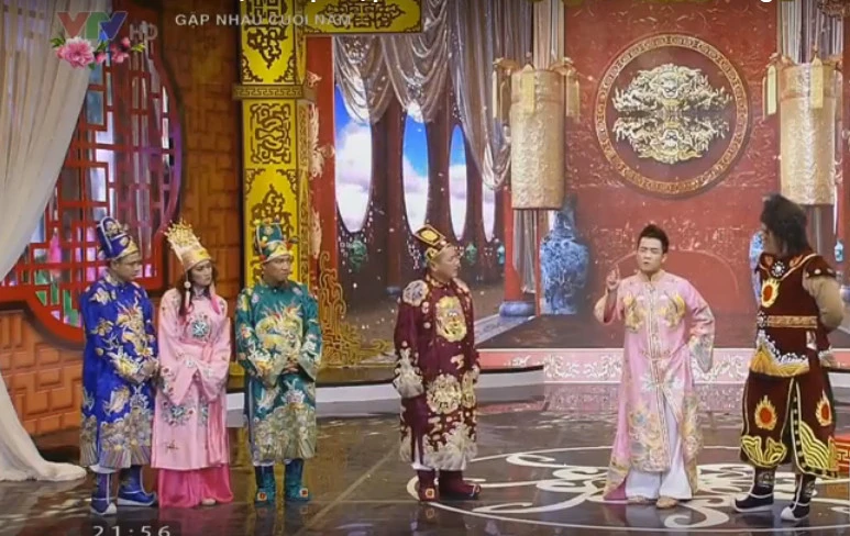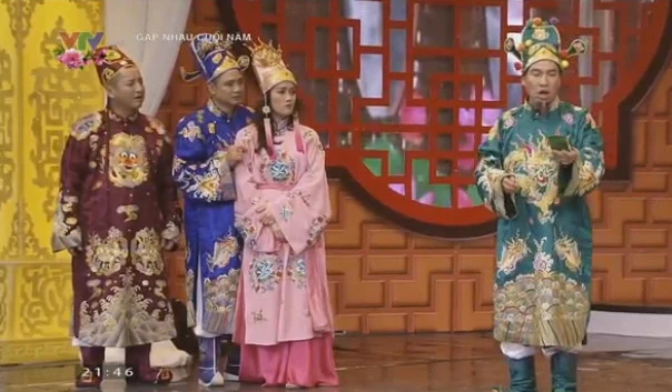 Vẫn rất xuất sắc trong các màn hát nhạc chế, như mọi năm, Tự Long - Táo Môi trường xuất hiện với phần nhạc ca khúc gây sốt năm qua: "Bống bống bang bang". Sau đó là phần ca Huế, rồi Xa khơi: Nắng tỏa chiều nay/ Chiều tỏa nắng đôi bờ anh ơi/ Gió lộng buồm mây ươm chân trời.../ Con chuồn còn bay nơi nơi/ Con giang chiều gọi bạn đường khơi...