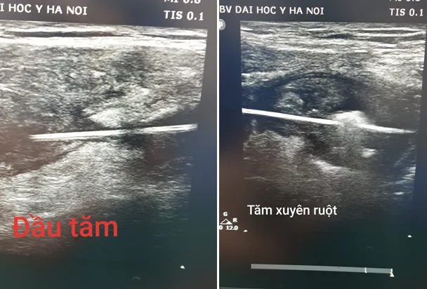 Bằng các phương tiện siêu âm và chụp cắt lớp, các BS nhận định chiếc tăm đã xuyên qua thành ruột non, một đầu găm vào thành bụng và một đầu vẫn nằm trong lòng ruột. Đầu ngoài chiếc tăm gây viêm ở thành bụng tạo thành ổ áp xe.