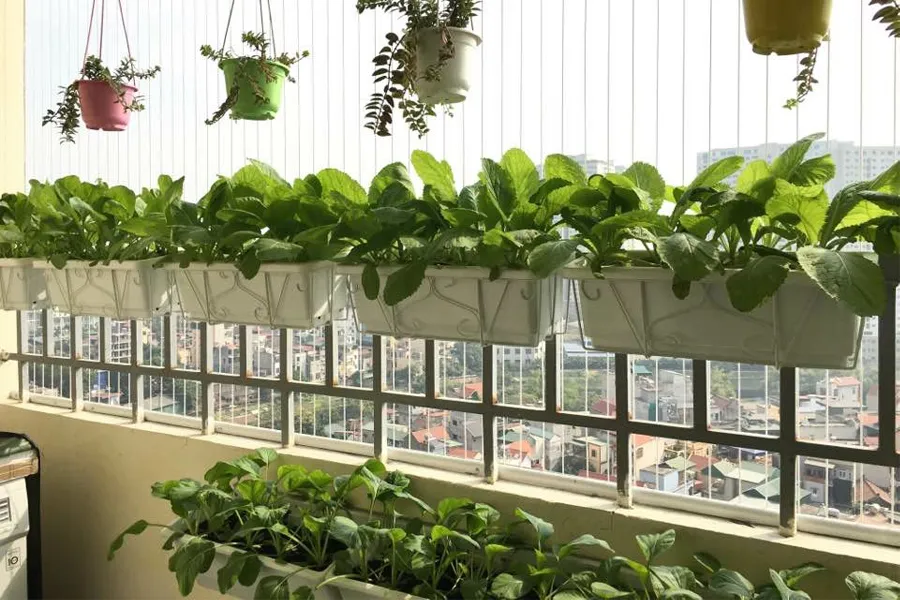 Dù là ở chung cư hay nhà riêng cũng nên tận dụng triệt để không gian ban công để làm vườn. Kể cả khi ban công nhà bạn không đủ chỗ đặt một chậu cây thì bạn vẫn có thể treo cây cảnh lên lan can. Một số chung cư không thiết kế ban công thì hãy tận dụng chiếc cửa sổ của bạn để móc lên đó những chậu cây nhỏ.