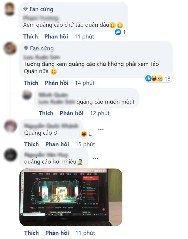 Một số bình luận "khó chịu" về vấn đề quảng cáo trong Táo quân. Ảnh: Chụp màn hình.
