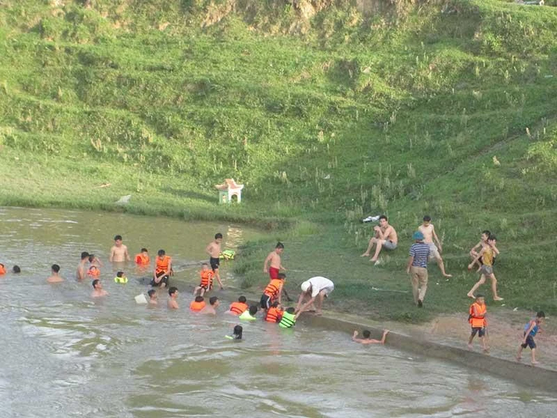 Trên hai triền đê, trâu bò nhởn nhơ gặm cỏ. Dưới dòng sông, người lớn và trẻ con thỏa thích tắm mát. Trước những thông tin nhiều trẻ bị đuối nước trong các dịp hè, các bậc cha mẹ nơi đây càng ý thức về kỹ năng sinh tồn nên mỗi chiều thường đưa con đến bến dạy bơi (ở quê rất hiếm hồ bơi).