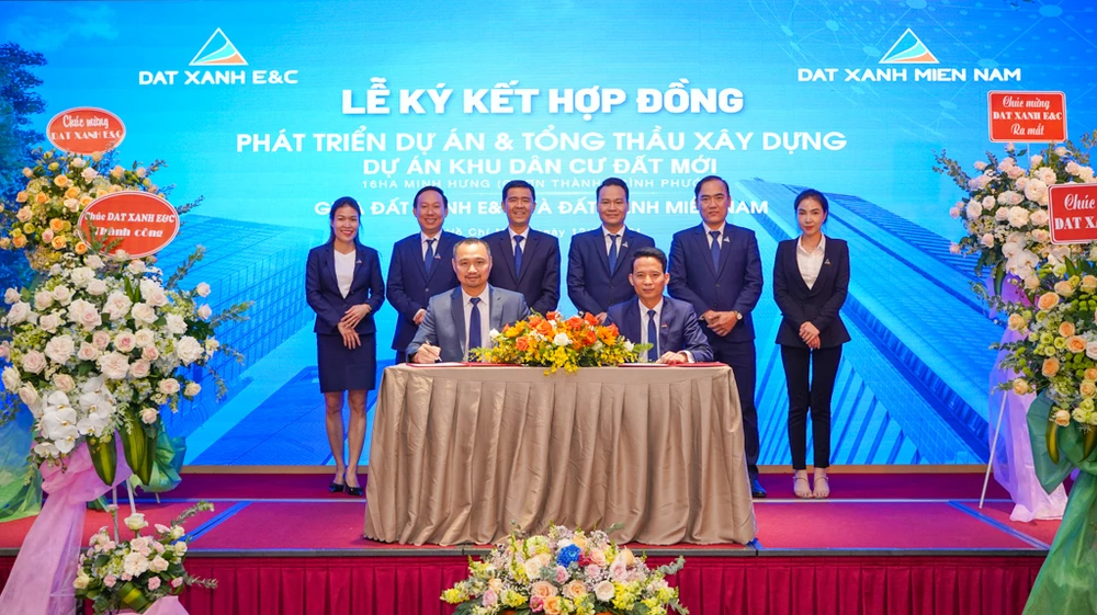 Đất Xanh E&C ký kết hợp đồng với Đất Xanh Miền Nam – một đơn vị thành viên của Dat Xanh Services (DXS) để phát triển dự án Khu dân cư Đất Mới Minh Hưng 16 ha tại xã Minh Hưng, huyện Chơn Thành tỉnh Bình Phước. Ảnh:ĐX