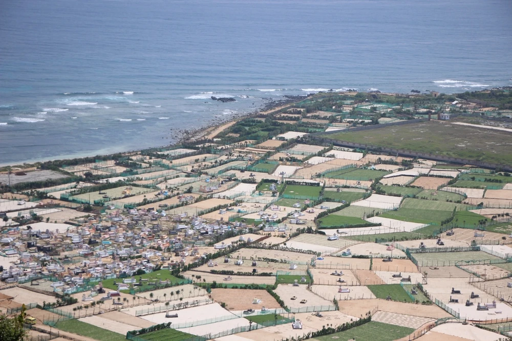 Cánh đồng hành, tỏi Lý Sơn nhìn từ đỉnh Thới Lới. Ảnh: TẤN VIỆT