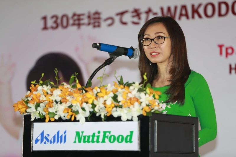 Bà Nguyễn Thị Lệ, Tổng giám đốc Asahi NutiFood phát biểu tại buổi công bố liên doanh