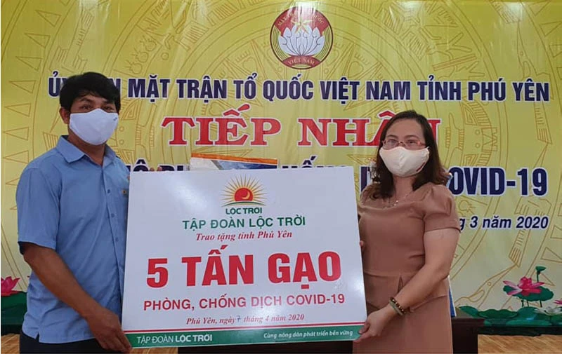 Ngày 7-4, đại diện Tập đoàn Lộc Trời (có trụ sở tại TP Long Xuyên, An Giang) đã trao ủng hộ 5 tấn gạo cho tỉnh Phú Yên để nấu ăn tại các điểm cách ly tập trung phòng, chống dịch COVID-19 ở tỉnh này.