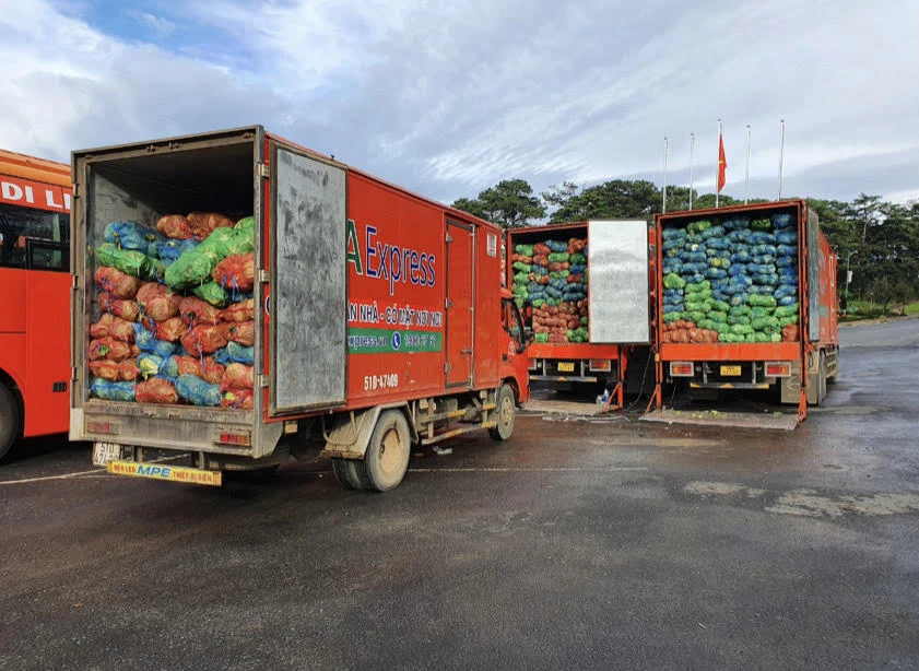 FUTA Group sẽ tiếp tục huy động toàn bộ nội lực chuyên chở khoảng 1.000 tấn rau củ quả hướng về TP.HCM. Ảnh: CTV.
