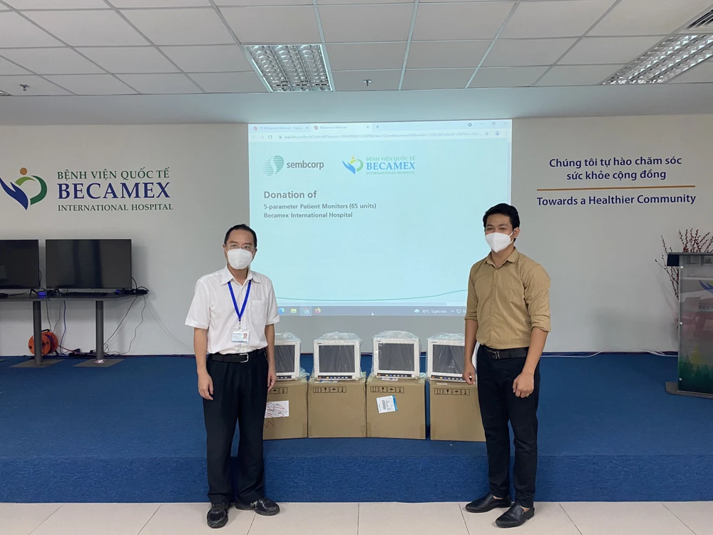 Theo đó, Sembcorp trao tặng một hệ thống xét nghiệm RT-PCR và 12 máy thở BIPAP cao cấp cho bệnh viện Đa khoa tỉnh Bình Dương và 65 thiết bị theo dõi bệnh nhân cho bệnh viện Quốc tế Becamex (phường Lái Thiêu, TP Thuận An).