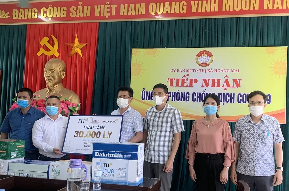 Trước tình hình đó, thông qua Quỹ Vì tầm vóc Việt, Tập đoàn TH đã khẩn trương triển khai hoạt động trao tặng hơn 30.000 sản phẩm sữa và đồ uống tốt cho sức khỏe, trị giá hơn 230 triệu đồng, đến lực lượng y tế và người cách ly thị xã Hoàng Mai.