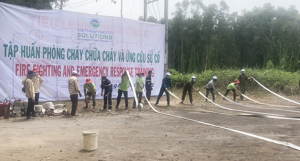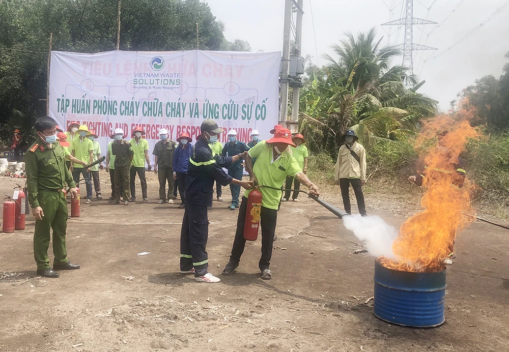 Ngày 29-3, Công ty CP Xử lý Chất thải Việt Nam - Long An (VWS-LA) đã phối hợp với Phòng Cảnh sát PCCC và Cứu hộ cứu nạn – Công an tỉnh Long An tổ chức buổi tập huấn PCCC và ứng cứu sự cố cho lực lượng bán chuyên của dự án Khu Công nghệ Môi trường xanh Long An (thuộc Công ty VWS-LA).
