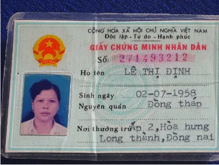 Chứng minh giả mà bà Đậm đã sử dụng để che dấu thân phận. Ảnh: CTV