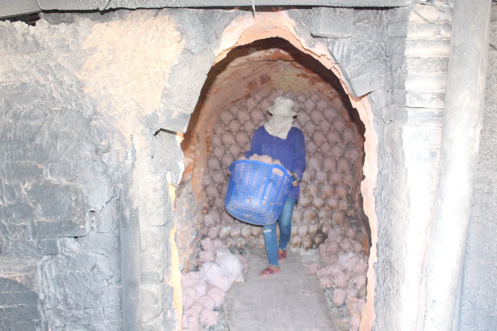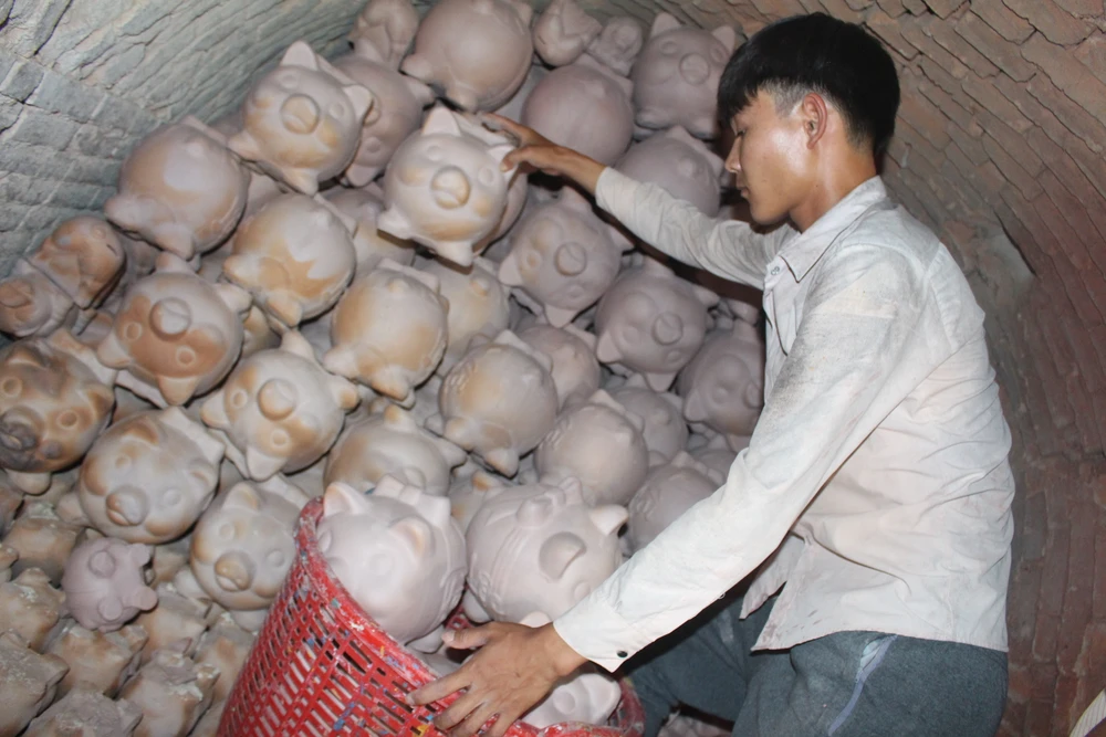 Trải qua khoảng 12 giờ nung trong lò, gần 2000 chú heo sẽ được xuất xưởng để tiếp tục công đoạn trang trí.