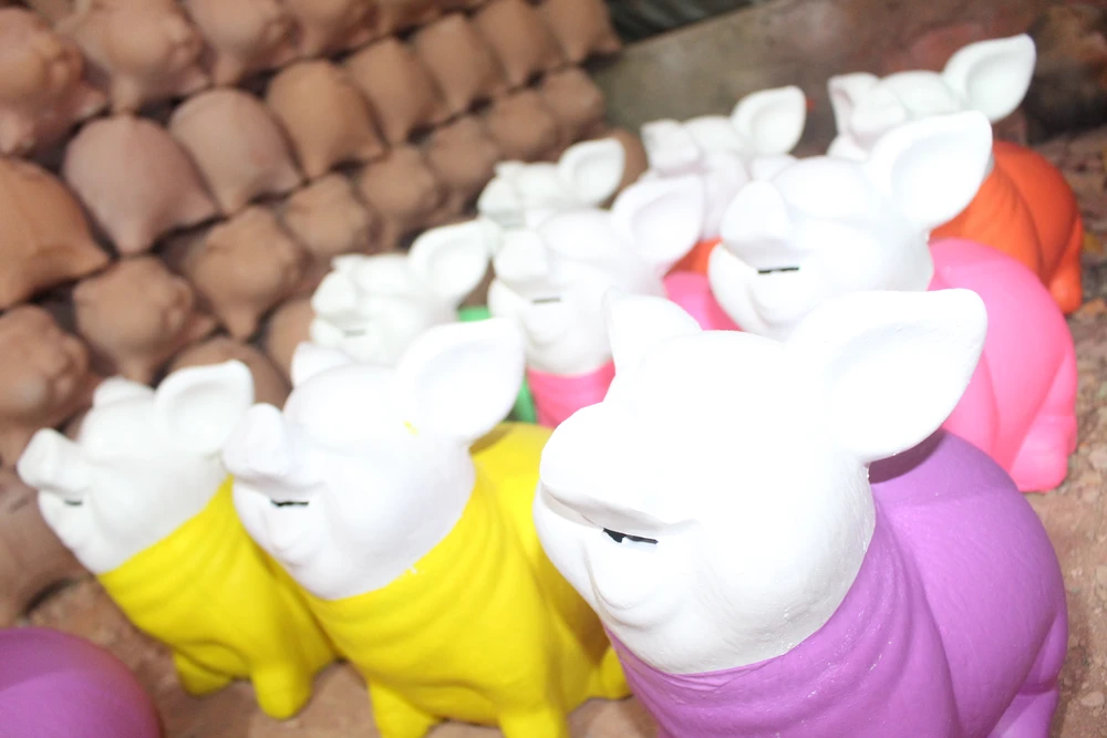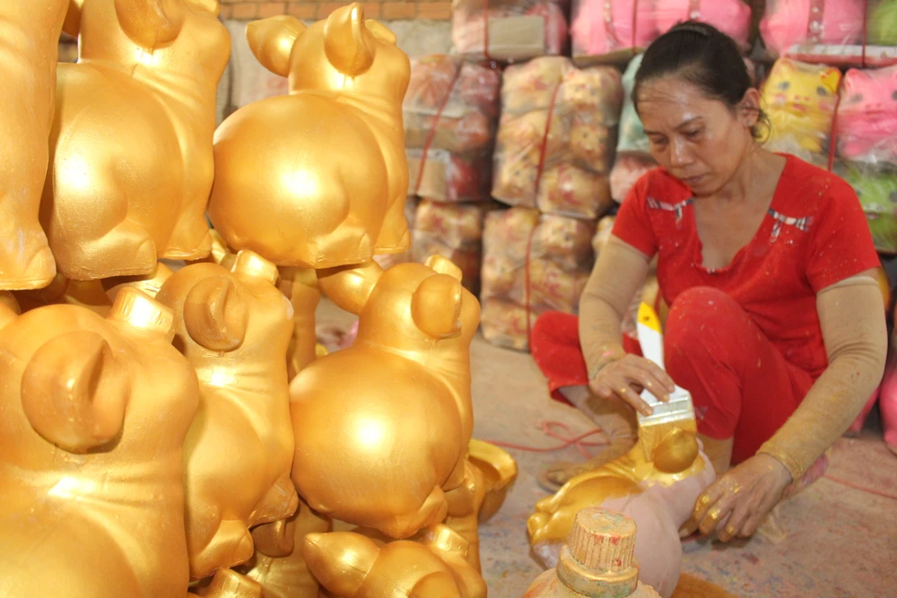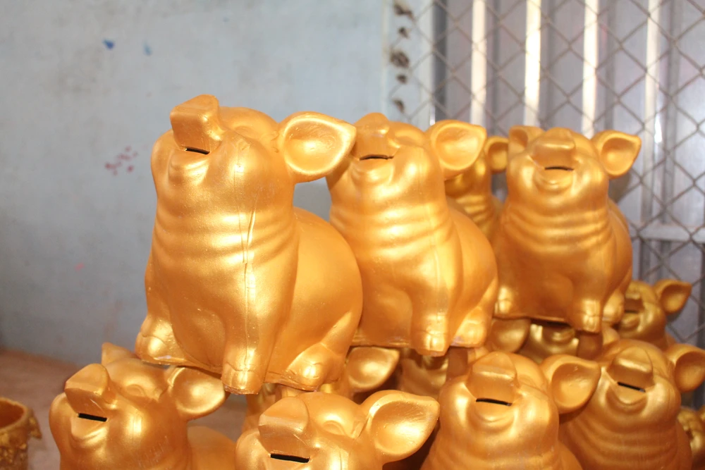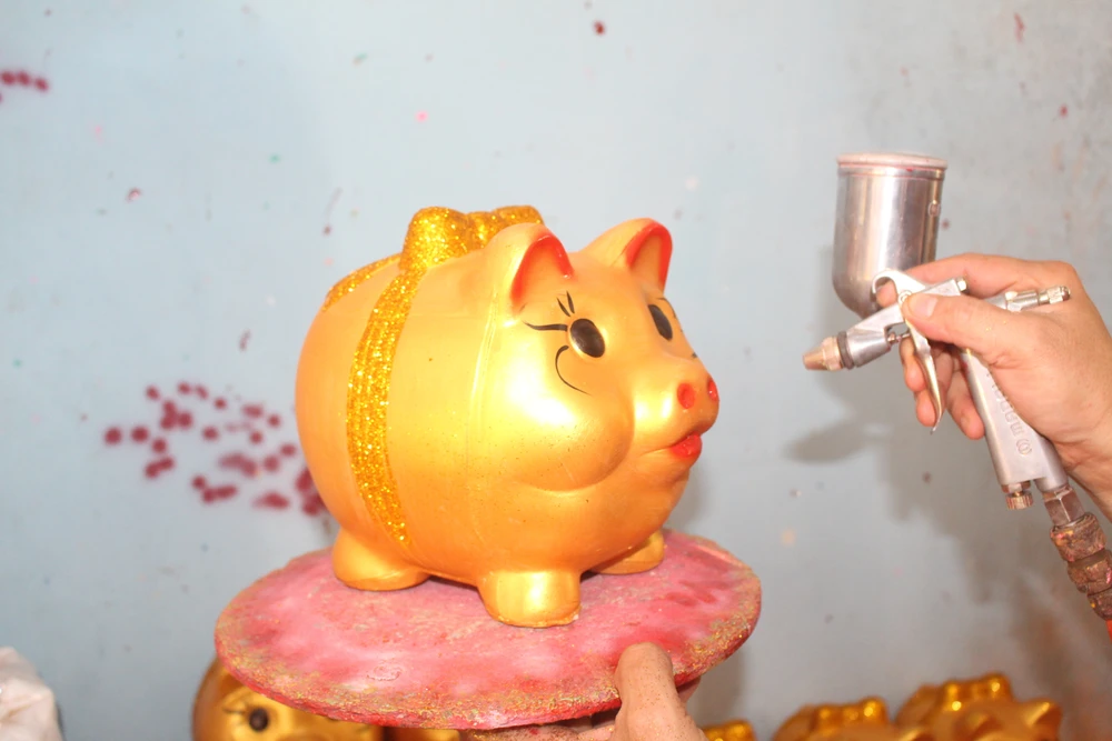 Một ngày mỗi cơ sở trang trí heo đất xuất xưởng khoảng gần 1.500 chú heo ra thị trường