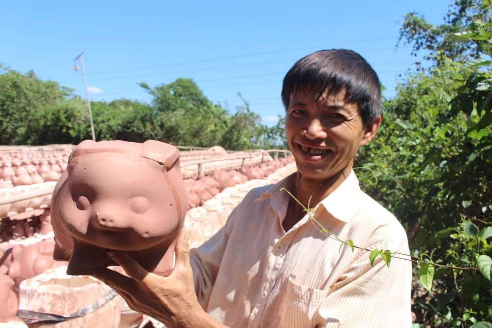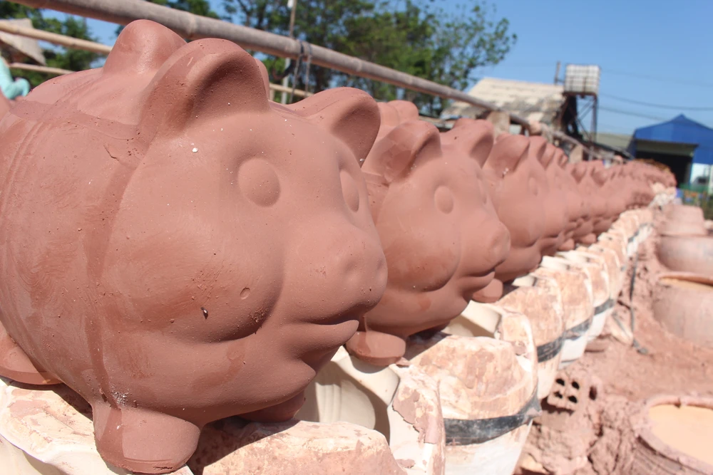 Để có một chú heo hoàn chỉnh phải trải qua rất nhiều công đoạn. Khâu đầu tiên là tạo hình thành khuôn. Đất sét được đổ vào bồn, hòa vào nước và keo để nhào nặn cho dẻo và có độ gắn kết, sau đó trộn đều. Đất sét sau khi được trộn sẽ đổ vào khuôn. Để heo được đẹp, các nghệ nhân sẽ cạo bỏ phần dư hoặc bị lỗi trước khi cho vào lò nung. Sau khi ra khỏi lò nung các chú heo sẽ được các nghệ nhân “trang điểm” trước khi đưa ra thị trường.