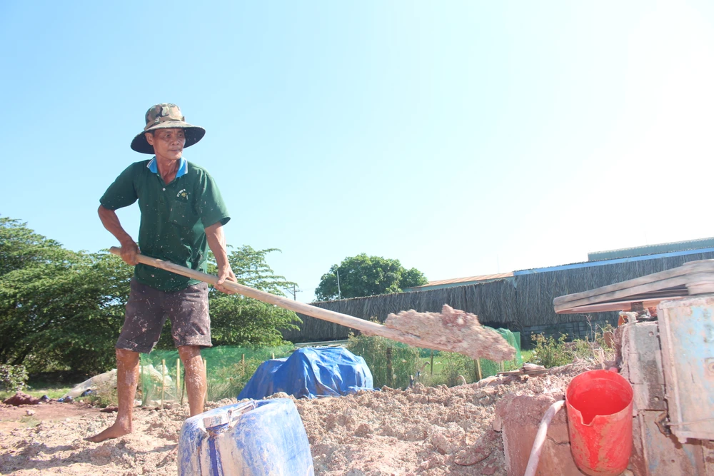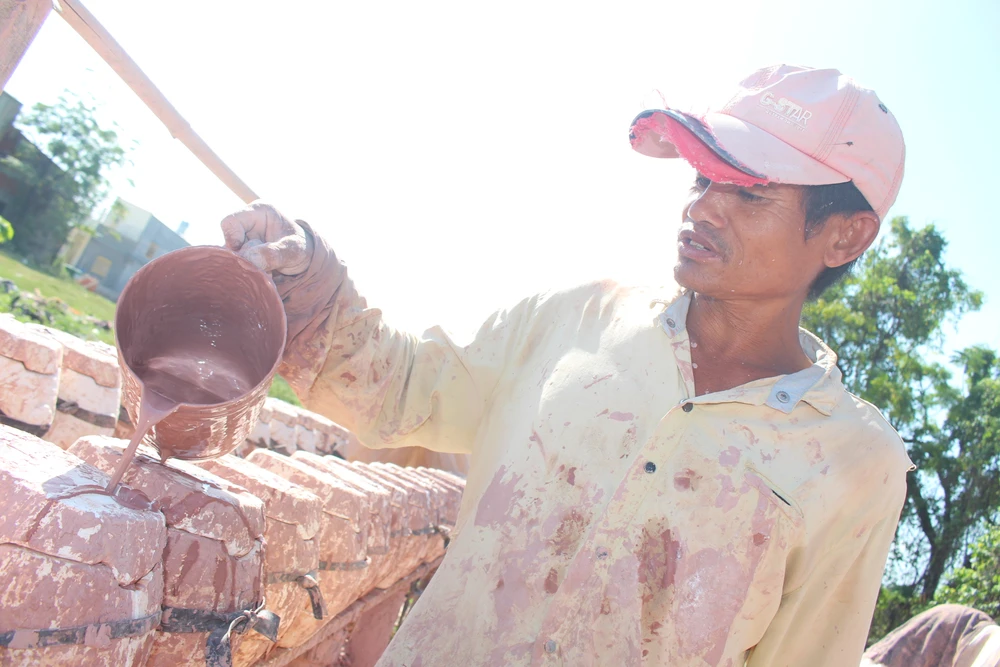 Người thợ đổ hồ được nhào từ đất vào các khuôn tạo hình sẵn
