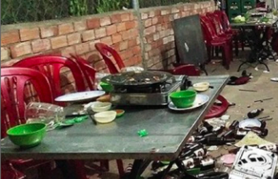 Cho rằng anh Hiên xem thường, đuổi khéo mình nên Dũng tức mình bưng luôn nồi lẩu đang sôi trên bàn tạt vào người anh này.