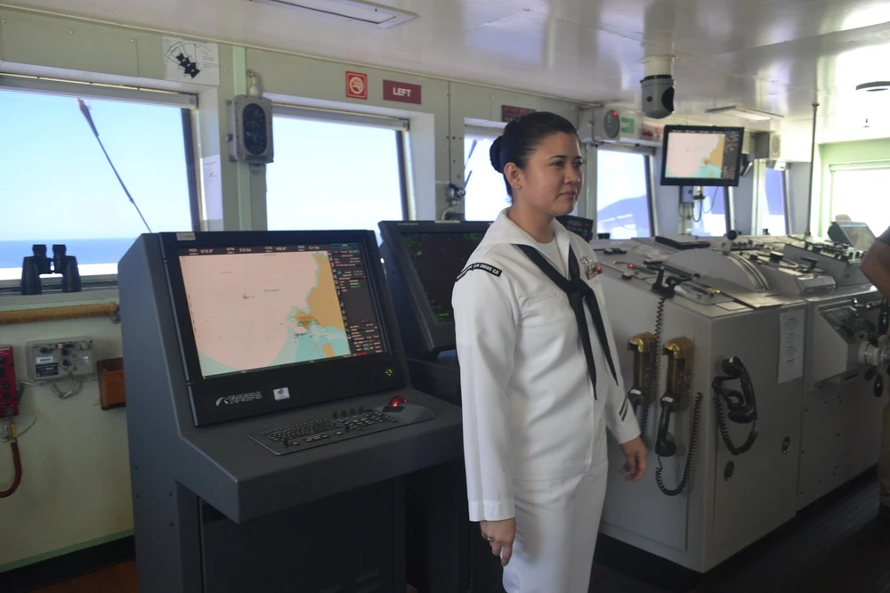 Bên trên phòng lái tàu USNS Mercy.