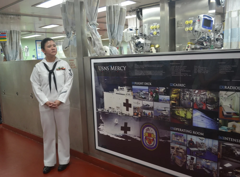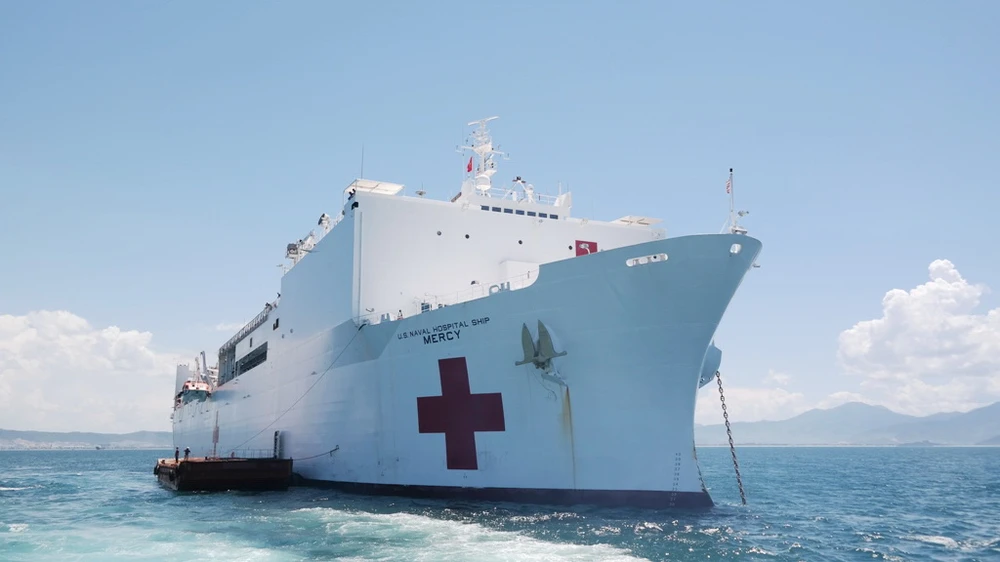 Tàu bệnh viện USNS Mercy được mệnh danh là bệnh viện khổng lồ của Hải quân Hoa Kỳ với quy mô hơn 1.000 giường bệnh cùng hàng trăm trang thiết bị y tế hiện đại. Trên tàu có 800 – 900 người, trong đó 300 người là bác sĩ, y tá thuộc các khoa như: khoa nhi, lão khoa, nha khoa... Ngoài ra còn có các chuyên viên về hội chẩn, xét nghiệm.