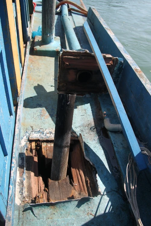 Một số hình ảnh tàu cá BĐ- 96496 TS bị hư hỏng sau khi bị tàu Trung Quốc truy đuổi, đâm húc. Ảnh: TRỌNG LỢI