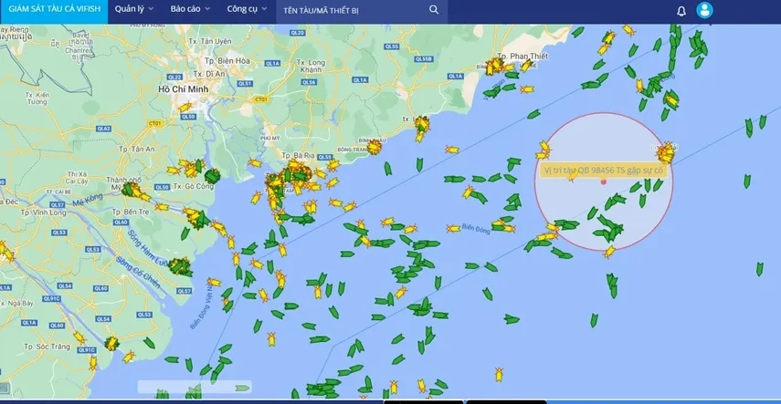 Theo Đài Thông tin duyên hải Hồ Chí Minh, lúc 2 giờ 15 phút sáng 20-1, Đài Thông tin duyên hải đã nhận được yêu cầu trợ giúp tàu cá QB 98456 TS bị thả trôi.
