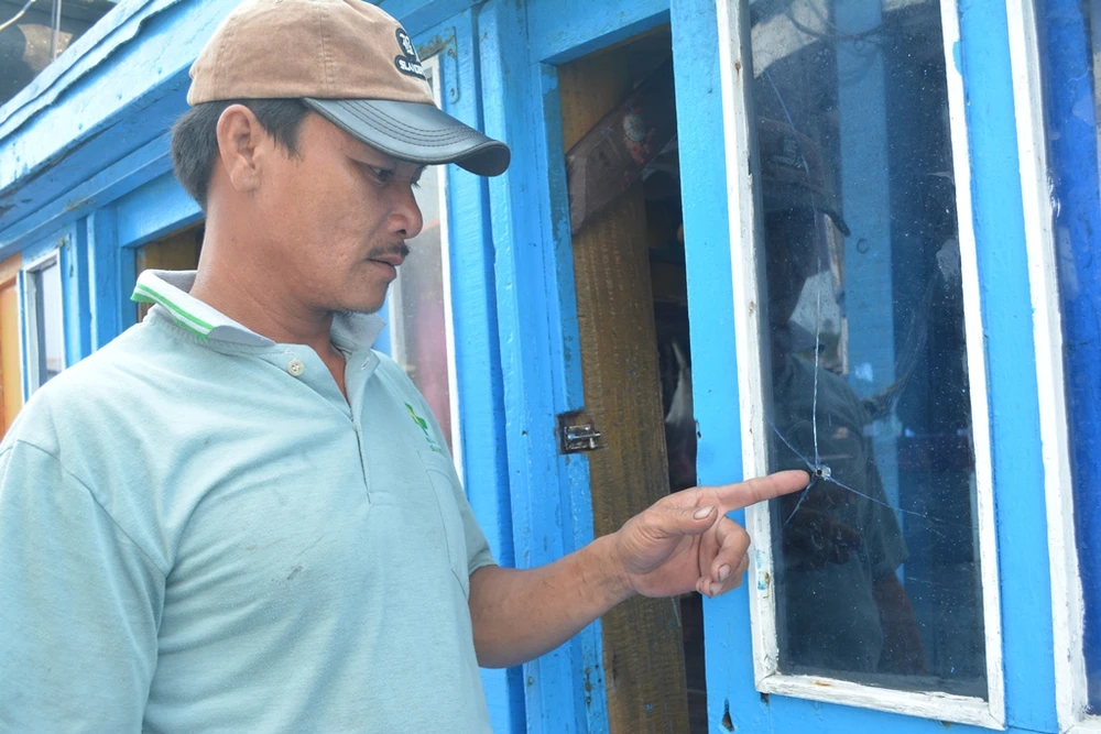 Lỗ thủng trên tàu do bị đạn bi sắt bắn. Ảnh: H.Anh.