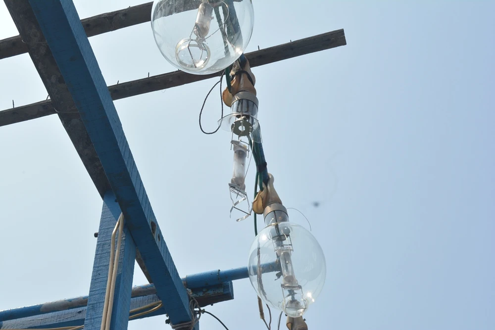 Bóng đèn trên tàu bị bắn vỡ. Ảnh: H.Anh.