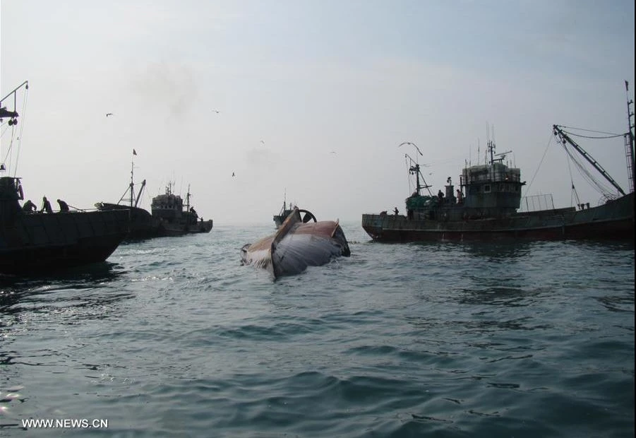 Nhà chức trách Hàn Quốc cho biết ít nhất bốn người khác vẫn còn kẹt lại bên trong tàu. Một quan chức cảnh sát hàng hải tại TP cảng Mokpo nói rằng con tàu bị lật khi đang được một tàu cá khác của Trung Quốc lai dắt sau khi bị trục trặc động cơ.