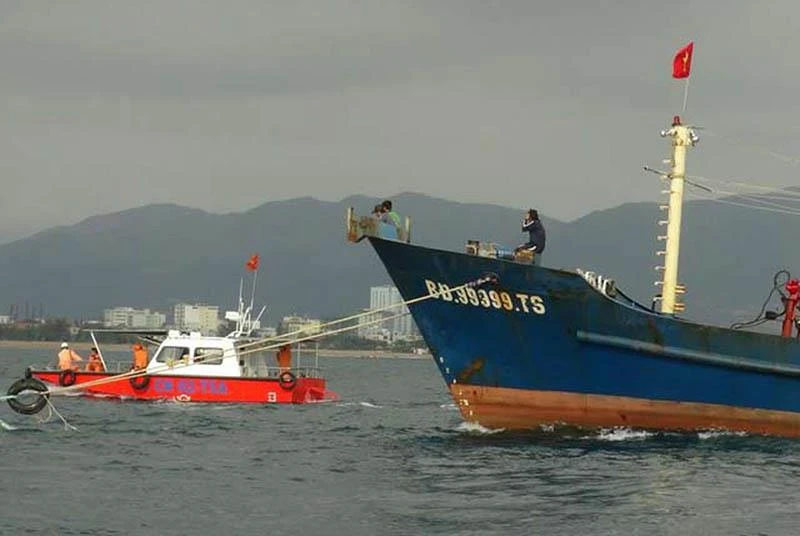 Tàu cá vỏ thép BĐ- 99999TS bị nạn trên vùng biển tỉnh Khánh Hòa hồi tháng 3-2017.