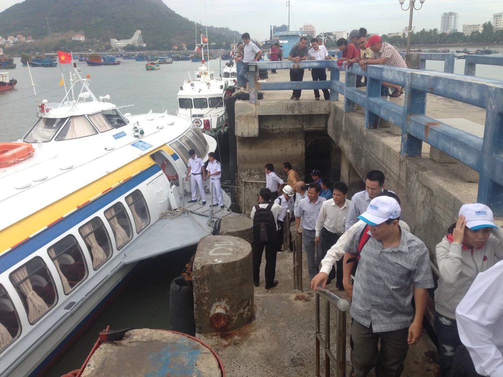 Hành khách đang rời tàu ở bến Vũng Tàu.