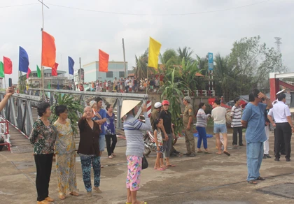 Người dân thích thú ra bến ngắm tàu cao tốc.