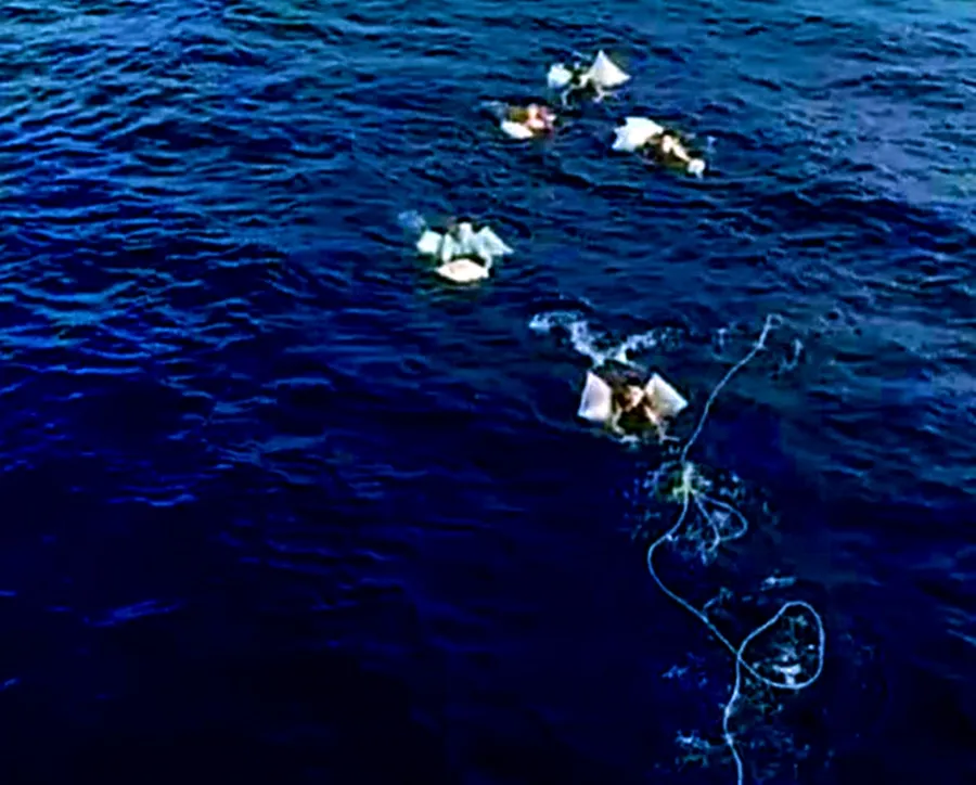 13 thuyền viên trên tàu đã nhảy xuống biển, bám níu vào các thanh gỗ, thùng xốp và áo phao. Sau nhiều giờ đồng hồ lênh đênh trên biển các thuyền viên cố gắng liên kết với nhau để không ai bị sóng cuốn đi.