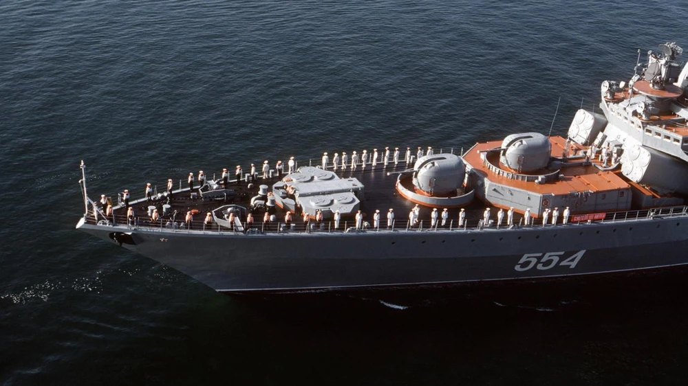 Con tàu khu trục của Đô đốc Vinogradov đã chạm trán với tàu chiến Mỹ. Ảnh: THE MOSCOW TIMES
