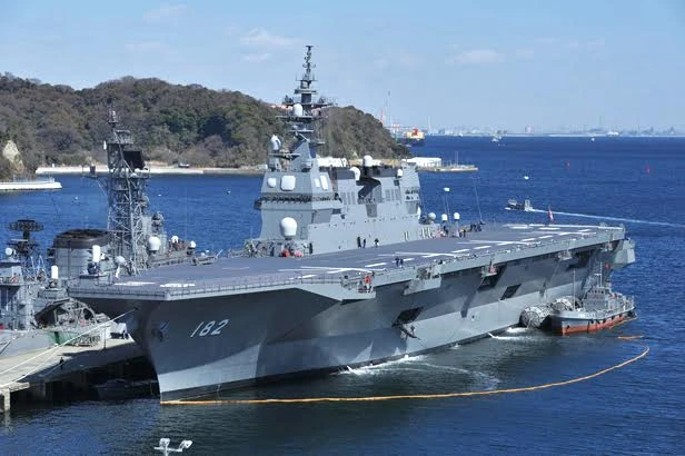Tàu khu trục Ise hiện neo đậu tại Kure, tỉnh Hiroshima của Nhật Bản. Loại tàu này có khả năng cho phép việc nhiều máy bay trực thăng đáp và cất cánh cùng lúc.